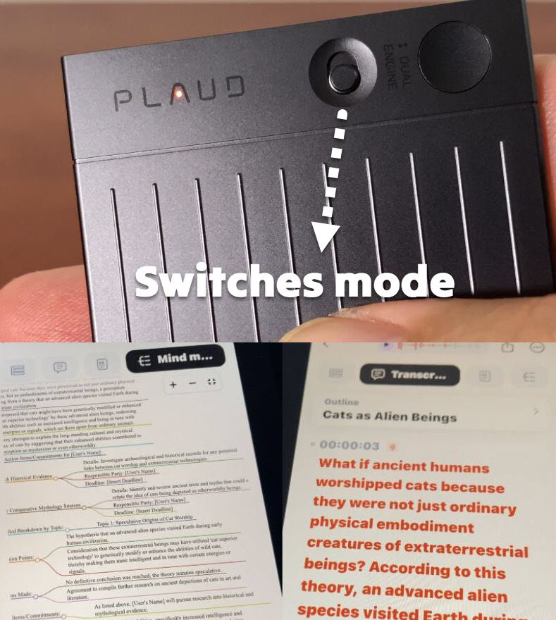 Plaud Note has a convenient switch that lets you change modes. You can go from note to call recording mode by sliding it up. You can start a call by holding the main button until you feel a vibration. You can stop it the same way, which ends with 2 vibrations.