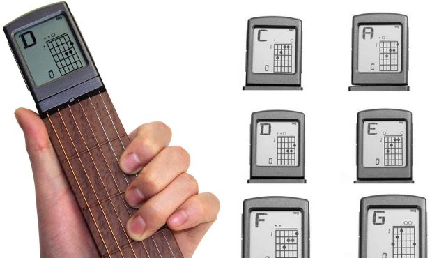 Learning how to play the guitar like a pro takes a lot of time and practice. This Pocket Guitar Chords Trainer is one of many tools you can get to help you along the way. It is a smart guitar chords training tool with steel strings that give you a more realistic feeling. It also has a convenient rotatable screen.