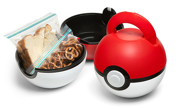 Poké Ball Lunch Case: has space for your food, cards, and everything in between. Has an integrated handle and push-button release lid.