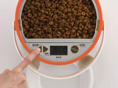 The machine automatically measures and serves meals in the right amount and at the right time. You can feed your pets from 1/2 cup to 6 cups per day. The PortionProRx has a self locking lid, food level sensor, and an internal battery to remember your settings in case of an outage.