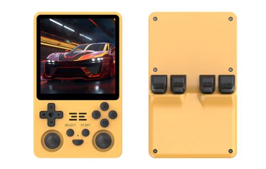 Here is another cool gift idea for retro gaming fans. The POWKIDDY RGB20SX has a 4-inch IPS screen and supports over 20 emulators. It is powered by a quad-core processor with WiFi and Bluetooth connectivity. It is compact enough to easily fit in your pocket. The TF card can be found on the side.