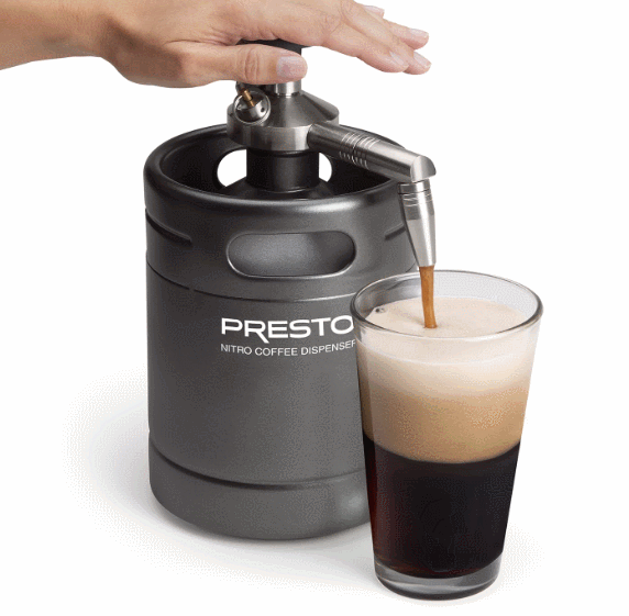 Here is another awesome gift idea for coffee aficionados. The Presto Cold Brew Nitro Coffee Dispenser comes with a 2-liter stainless steel mini keg and a rotating spout. It is compact enough to fit in most refrigerators. You simply have to fill the keg with up to 48 ounces of your drink and charge it using nitrous oxide or nitrogen cartridges.