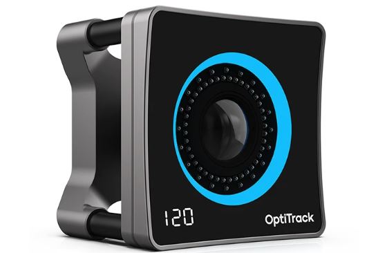 This is the OptiTrack PrimeX 120: a motion capture camera that allows precise 3D motion measurement. Its high resolution lets users track smaller markers. It has a 18mm lens that is treated with a wide band anti-reflective coating. This mocap camera has a 51° x 39° field of view.