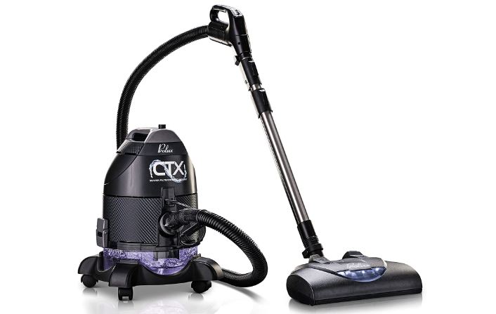 The Prolux CTX has a 130CFM deep cleaning performance. It uses water, 280nm UV light and nano silver tech to clean the air of dirt, dust, pet hair, and bacteria. You can deal with wet spills using the tool hose.