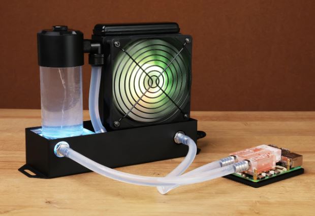 The Raspberry Pi 5 is wonderful single-board computer for DIY electronics and robots. It is twice as powerful as the Pi 4. Just like every other computer, your RPi 5 can get warm under load. The Seeed Studio Raspberry Pi 5 Water Cooler is designed to prevent that. It has an integrated water pump and cooling fan for easy installation. It also has RGB lights.