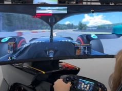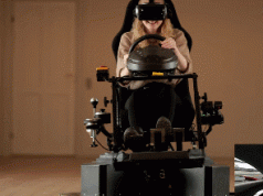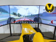 This racing simulator measures 82″L x 35″W and has a 5-way adjustable cockpit. Its rear storage area works for a PC, PlayStation, and games.
