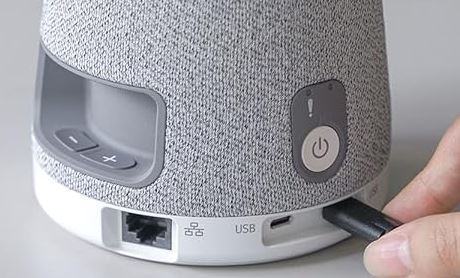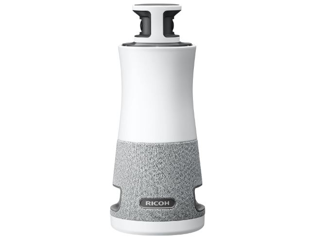This camera has dual lenses to capture the entire room. It has 3 built-in 8W speakers. You can get up and running with a simple USB-C connection. The RICOH Meeting 360 V2 has volume and mute controls for both sides. It has a button that lets you change modes (presenter, group, mixed).