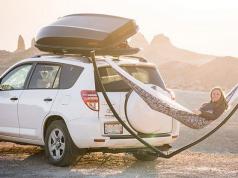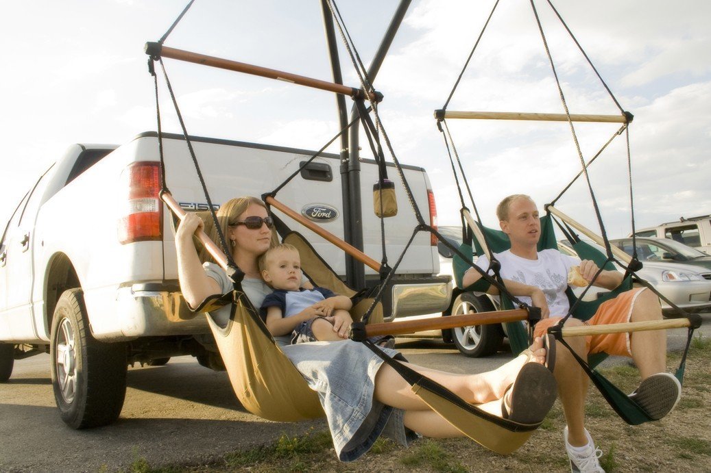 Meet the Roadie: a stand that uses your car to hold your hammock. It stays secure under the wheels of your car, giving you a place to sleep, even in the middle of nowhere. The Roadie has 400 lb capacity and a portable design. It is made of powder coated durable steel.