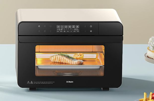 Meet the ROBAM R-Box CT763: a 20-in-1 convection oven that replaces multiple appliances. It has enough room for a 10lb chicken or 12-inch pizza. It has 30 built-in recipes for you to try. The CT763 has steak, grill, defrost, sterilize, air fryer, and ferment functions. It has multiple steam modes from 185F to 300F.