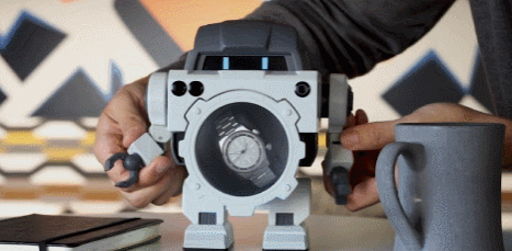 Here is one of the coolest watch winders money can buy. The Robostands RW1 is an automatic watch winder with a robot inspired design. It has 3 modes for your watches, which you can change using the switch in the back (ccw 700 tpd, ccw 1100 tpd, cw 700tpd). This gadget also has a lume charger with a hidden UV light.