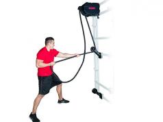 Meet the Rogue Alpaca Sled: a fitness tool for fully body exercises and CrossFit training. It has bent steel handles and a loadable pan attachment that can hold sandbags, dumbbells, and kettlebells. The handles measure 1.9-inches in diameter. They can be positioned on either end of the sled.