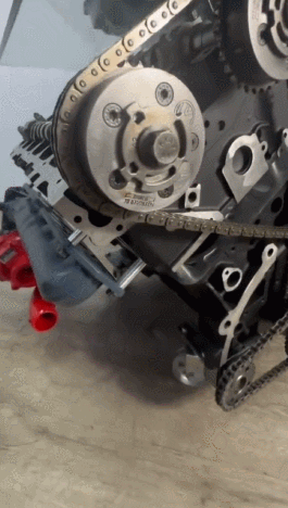 This engine table is powered by a Milwaukee 20V battery. It also has a thick tempered glass top. According to Ben’s Automotive Decor, these tables can be made with other engines.
