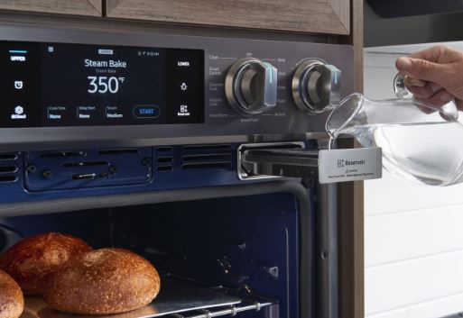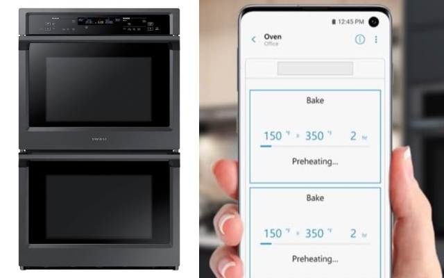 Here is a connected oven that you can control with your smartphone and voice. The Samsung 30-inch Smart Double Wall Oven (NV51K6650DG/AA) has a Steam Cook feature to deliver the right amount moisture at the right time to cook your food. This oven has 5.1 cu.ft capacity. You will be able to monitor cooking time and temperature through the SmartThings app.