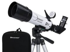 This telescope comes with an app for automatic star finding and tracking. It has a 1/2.8″ camera sensor. With advanced noise reduction, you will be able to see sharp images even in light polluted areas. The Seestar S30 has a portable design, weighing only 3.6 lbs. It has a magnetic solar filter. Here are the specs:
