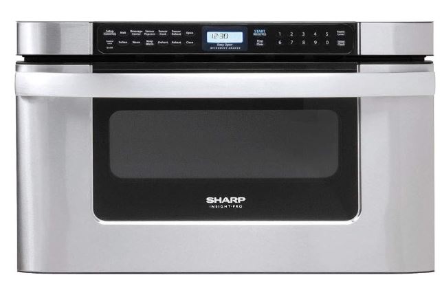 Here is a sleek microwave drawer oven with plenty of space for your food. The Sharp 24-Inch Microwave Drawer Oven has 1.2 cubic feet of interior space. It has 11 programs built-in to save you time. It has an AutoTouch key to open and close the door automatically when your hands are full.