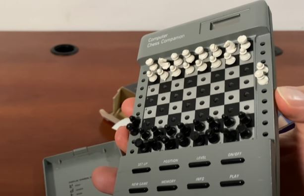 Chess computers have come a long way over the years. The latest models work with Lichess and Chess.com. Many people use their smartphones to play against engines and others anyway. Before smartphones, people used to buy portable chess computers. Take the Sharper Image sm460 Computer Chess Companion for instance: it is a compact chess computer from a while back that easily fits in your bag. It has a peg sensory board and tiny pieces that you can use to enter the moves.