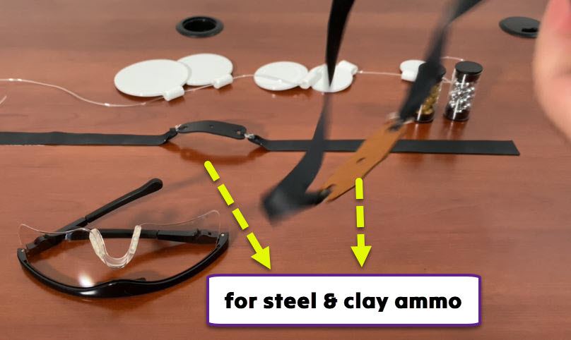 Before getting started with slingshots, you will want to make sure you have the right grip. You will also have to know your dominant eye. It took us just a couple of tries to hit the spinning targets that were sent to us in this package. The included safety glasses are comfortable to wear and give you ample protection. While the main kit has 20 steel and clay rounds, we were sent 500 extra to practice. The clay rounds are biodegradable, so even if you lose them, they won’t leave a trace.