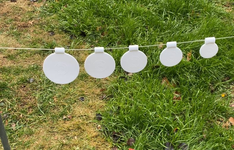 The Axiom is available in 4 colors, including black, green, slate, and orange. We tested the black version. It took us about 10 minutes to go from unboxing to shooting. There are YouTube videos on SimpleShot’s channel that you can watch if you are just getting started with slingshots. The key is to get your grip right and practice regularly. We used two simple metal posts to install the spinner targets. These are available in 40 to 80 mm sizes. They are neither wood nor metal but they didn’t get damaged in our tests.