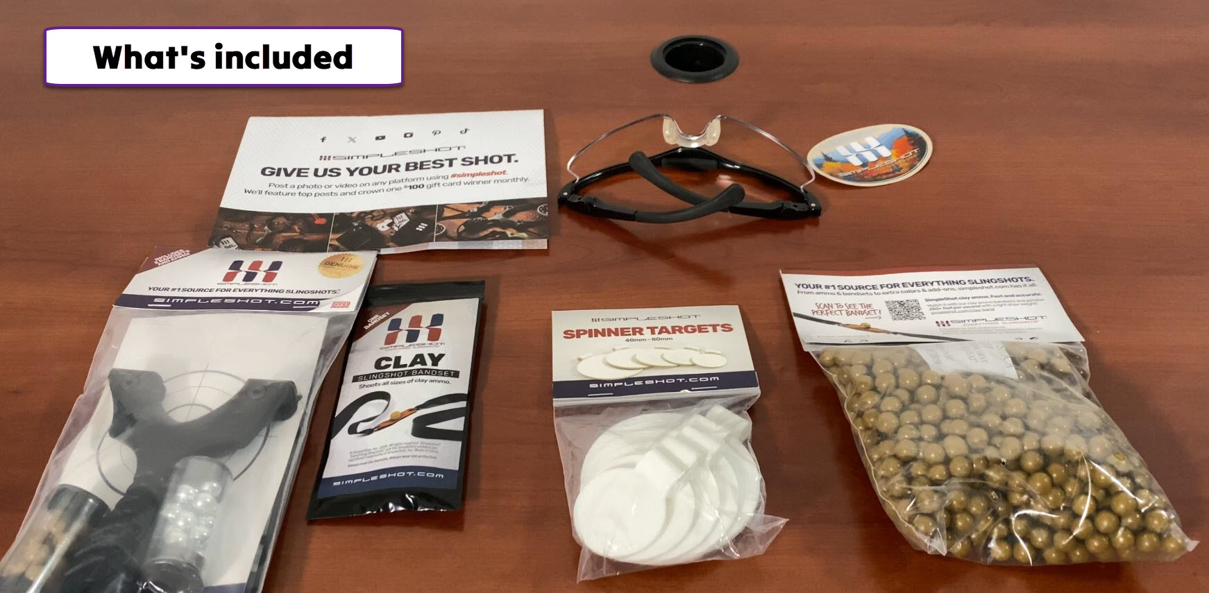 You don’t need to be a serious hunter to enjoy using a slingshot. While they can be used to hunt a rabbit or squirrel, you can also use them on cans or bottles to work on your shooting skills. The SimpleShot Axiom is a neat OTT-frame slingshot that can shoot clay and steel rounds. It comes with multiple bands, so it is quite versatile. The good folks at SimpleShot were kind enough to send us one to test. Let’s see what was included: