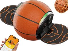 So you want to play basketball indoors? The SKLZ Pro Mini Basketball Hoop can help. It is a miniature basketball hoop with a pro-grade spring-action breakaway steel rim for slam dunks. It is easy to assemble and mounts over any door. You get a 18″ by 12″ clear polycarbonate shatter-proof backboard and a 5.5″ diameter ball.