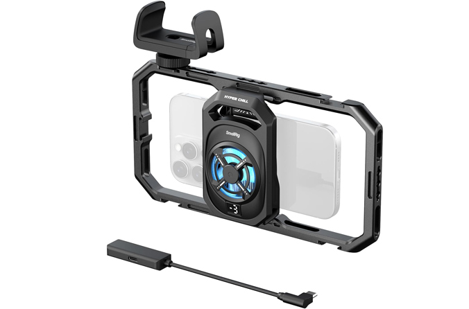 This filmmaking cage can be used with iPhone 17 and earlier as well as top Samsung, Google Pixel, and Huawei Mate 60/30 models. There are multiple 1/4″-20 holes and cold shoe mounts for you to choose from. It is also ready for 67mm filters. Its 7-blade fan has an aluminum alloy heatsink and cold plate to keep your phone from overheating under load.