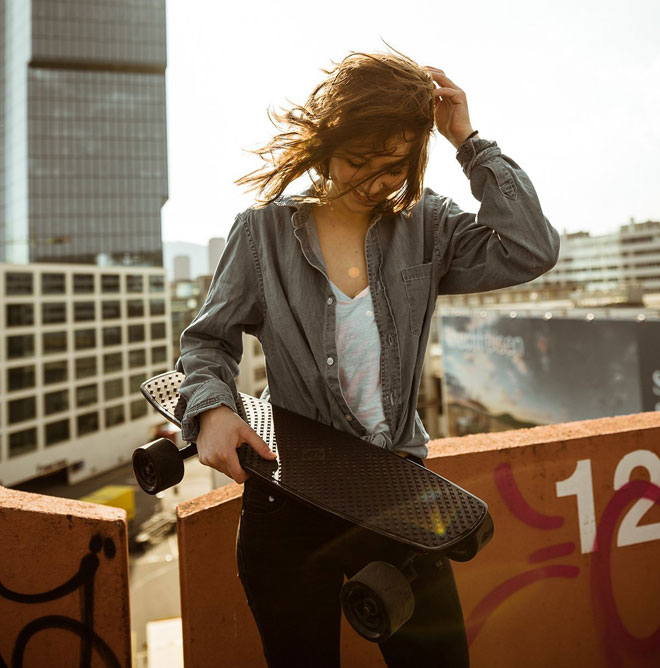 Here is another cool electric skateboard that can get you to your destination without you having to break a sweat. The SoFlow Lou 2.0 is a carbon fiber skateboard with speeds up to 17 mph. It is lightweight and compact enough to carry on a plane.