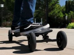 Meet the Stair-Rover: a versatile skateboard designed for urban environments that can glide down stairs with ease. It has an eight-wheeled mechanism that lets you move over smooth or uneven terrains. When you are going down the stairs, Stair-Rover’s wheels move independently and conform to the shape of each step to keep you balanced.