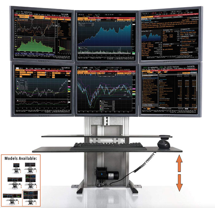 Meet the Stand Steady ErgoTech Standing Desk Converter: a versatile system that can easily hold and lift 6 monitors to make life easier for stock traders, graphic designers, and other pros. It allows for one touch electric adjustment and can raise your things up to 20″.