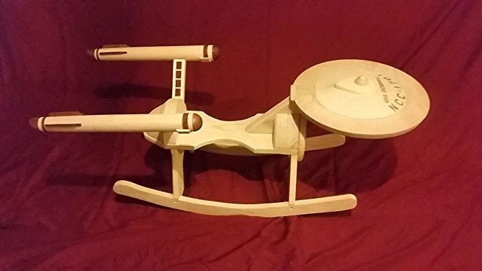 Here is a cool rocking toy for children inspired by Star Trek. The Starship Enterprise Rocker is a handmade wooden rocker that keeps your children entertained and looks good doing it. Each can be personalized with your child’s name and birth date.