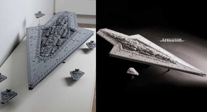 Here is another awesome building kit for Star Wars fans. This Star Wars Executor-class Star Dreadnought has 7284 pieces. It has ABS plastic bricks and can be enhanced with LEGO pieces. The model measures 132cm long by 49cm wide when completed.