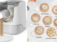 Making your own noodle and pasta at home is going to be a whole lot easier when you have a Starfrit Electric Pasta & Noodle Maker around. This pasta maker comes with 8 shaping discs. You can use them to make penne, spaghetti, lasagna, angel hair, fettuccine, tagliatelle, spaghettini, ravioli and dumplings.