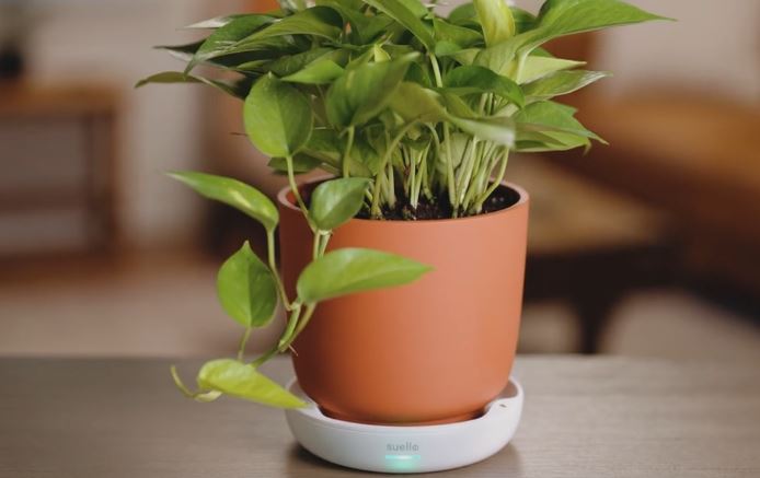 The Suello app sends you helpful notifications. This smart planter can measure soil pH to tell you what you need to change. It also monitors room temperature, so you will know when conditions are too cold for your plants. It can be charged in 2 hours and lasts up to a month on battery. Suello should work for thousands of plants. You can order this in white, terracotta, and olive colors.
