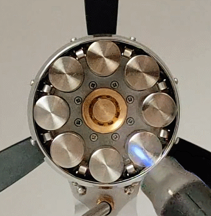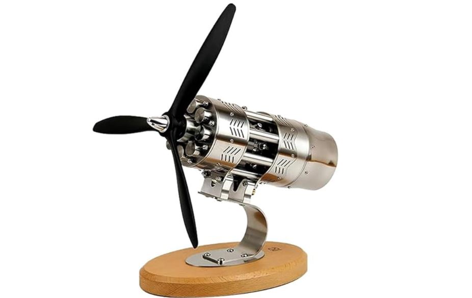 Here is another cool gift idea for engineers in your life. The Swashplate 16 Cylinder Aircraft Engine has a stainless steel and aluminum construction. It runs on butane gas and can reach max speeds of 2000 RPM. This engine is made by Kazuya Model Studio.