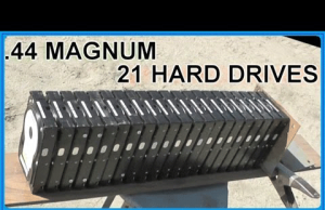 .44 Magnum vs. 21 Computer Hard Drives