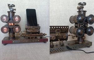 Victorian-era Inspired Steampunk Nixie Clock & Phone Holder