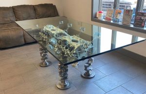 Rotating X-Frame Engine Block Coffee Table by Ben Harvey