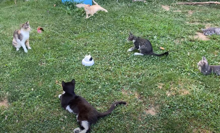 The TBTeek Cat Toy has two buttons on one side. The function button lets you turn the laser feature on/off. You can change the laser position with a simple slide. This toy also has cute light-up ears that look cool in the dark. The battery lasts up to 40 hours. What’s neat is this toy can easily keep 4 or 5 indoor and outdoor cats active.