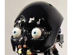 Here is another animatronic head for your projects. This TechArtStudios Animatronic Head reacts to your music. Simply load your audio players with music, adjust sensitivity settings on the back of the head, and push the button. The eyes move side to side and glow.