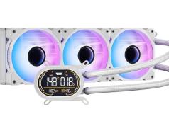 In order to keep your high-end computer cool, you are going to need a decent liquid cooler. The Thermalright Trofeo Vision 360 ARGB Liquid Cooler is one of the most colorful ones yet. It has a 6.86-inch LCD display with 1280x480p resolution. Its display has a customizable theme and supports video playback. You will be able to use it to keep an eye on your system resources. This cooler has 3 fans for better heat dissipation.