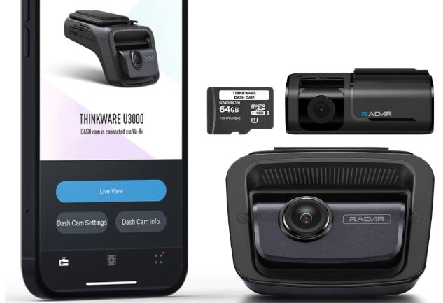 The THINKWARE U3000 has a radar parking mode to monitor motion without consuming too much power. It has a GPS antenna to track speed and time data and can alert you to red light and speed cameras. Here are the main specs: