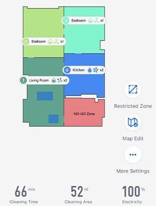 This robot supports 14 no-go zones. It has a 300ml dust bin and 250ml water tank. The L9000 has carpet boost function. It has smart sensors to detect steps and avoid drops. The companion app lets you change suction and water output levels.