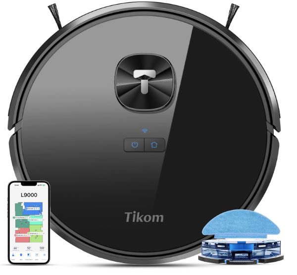 Robotic vacuums are getting more suction power and smart features all the time. The Tikom L9000 is a vacuum and mop combo with LiDAR navigation, smart mapping, and 4000Pa suction power. It lasts up to 150 minutes on battery in quiet mode. This robot has app and Alexa control.