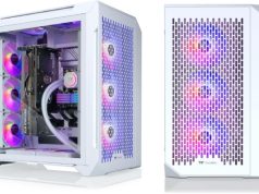 This computer may have a small footprint but comes with powerful fans for cooling. It also has RGB lights.