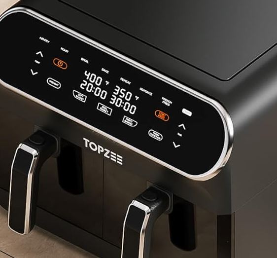 Just like other air fryers, this model lets you cook your food with less oil. It has a nonstick basket and tray for easy cleanup. With the sync feature, you will be able to use identical coking settings for both baskets. The Topzee Dual Basket Air Fryer has a timer up to 24 hours. Its temperature is adjustable from 90 to 400F.