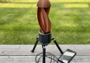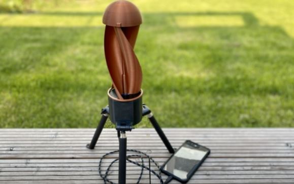 Tornado lets you charge watches, flashlights, cameras, and everything in between. It can handle winds blowing from any direction. Its height can be adjusted from 1.15ft to 4.59ft thanks to its telescopic legs. It can operate in winds from 3 to 43mph.