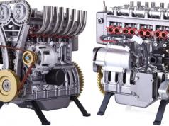Here is another engine that can be used for DIY model cars or teach science and engineering concepts. The TOYAN FS-L200W 2-Cylinder 4-Stroke Engine Model has an extended crankshaft to be matched for forward/reverse gearboxes. It has a max speed of 16000RPM.