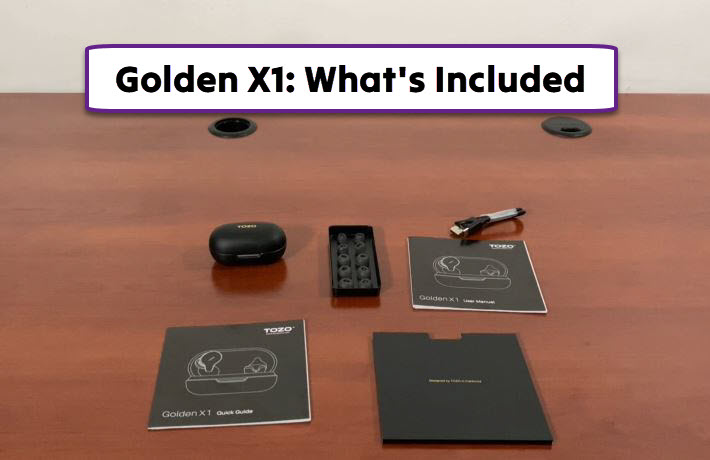 Picking the right pair of earphones can take quite a bit of research. There are plenty of affordable earbuds that simply don’t offer great sound quality. On the other hand, a lot of more expensive models don’t live up to the hype. The TOZO Golden X1 earphones strike the right balance of price and high resolution audio quality. The team at TOZO kindly provided us with a pair for this review. Let’s see what was included: