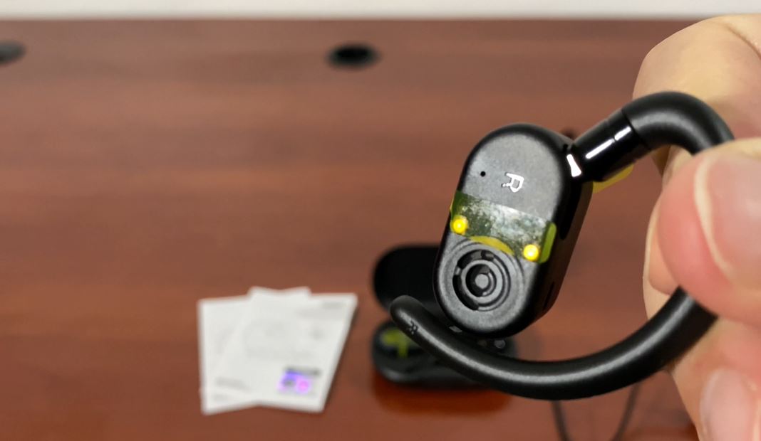 These headphones are IPX6 rated, so you can exercise with them. They have a dual-axis adjustable design, so they should fit on ears of all shapes and sizes. You get a short USB-C cable to charge these with your laptop. We found pairing these to our laptop and iPhone/iPad a breeze. Opening the charging case automatically powered them on. You can use these earbuds together or individually.