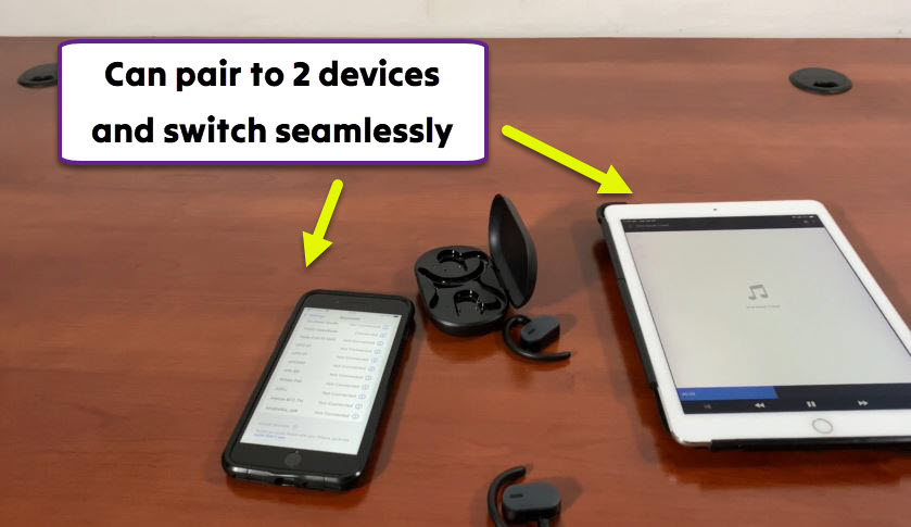 You have the option to pair these with multiple devices. For that, simply pair your Open Buds to your phone, then turn its Bluetooth off and pair them to your second device. Finally, turn the first device back on and connect to these earphones. They automatically switch to the device that is playing audio.