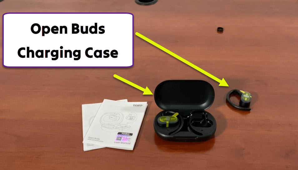 Our TOZO Open Buds came in a neat, tiny package. We got a charging case, two open ear headphones, a manual, and a charging cable. We used the manual only to learn the various touch commands. The case not only holds the earbuds but also provides additional battery juice for them (up to 42h). The open ear design ensures you stay aware of your surroundings while enjoying your music or podcast.